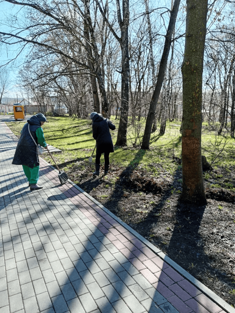 Были подметены пешеходные дорожки в Центральном парке и убрана прошлогодняя листва.